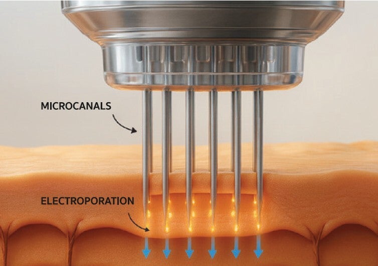 Méthode exclusive conçue pour augmenter l'efficacité des procédures axées sur l'esthétique régénérative avec le Microneedling + l'électroporation comme synergie thérapeutique pour la biosimulation cellulaire.